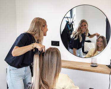 Voor hair extensions vraag ik om steeds eerst een afspraak te maken voor een gratis adviesgesprek. Tijdens dit gesprek bekijken we samen de verschillende mogelijkheden en bespreken we wat voor jou het beste en meest natuurlijke resultaat zal geven.